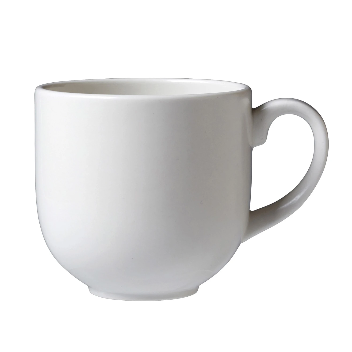 This Steelite Performance Taste 12 ounce mug is made from alumina vitrified china and comes in a white color. This mug is freezer, dishwasher, and microwave safe, and includes a lifetime edge chip warranty.