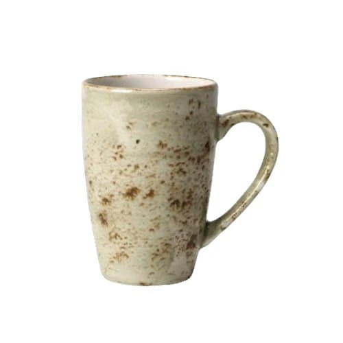 Serve coffee, tea or other hot beverages with this 10 ounce quench mug from Steelite. It is part of the Performance Craft Green Collection and will add a rustic look to any table setting. It features a gem‐like glaze that will be sure to impress any guest. This mug is microwave, freezer and dishwasher safe and is perfect for restaurants, diners or hotels.