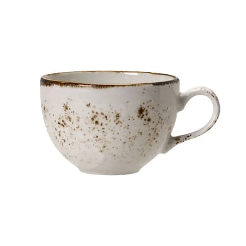 Serve hot beverages with this 8 ounce low cup from Steelite. It is part of the Performance Craft White Collection and is inspired by hand‐crafted, simple country wares made by generations of potters over hundreds of years. This cup features a gem‐like glaze and will add a rustic look to any table setting.