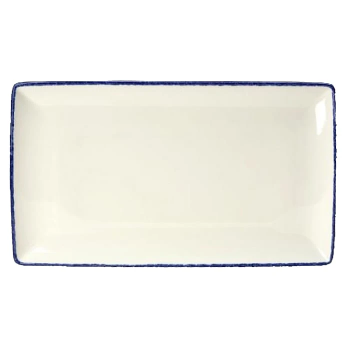This 12.5″ x 7.5″ Blue Dapple platter is part of the Steelite Performance Collection and features a blue color around the edge. This platter is hand-finished with a textured reactive glaze on the edge and has exceptional resistance to mechanical and thermal shock.