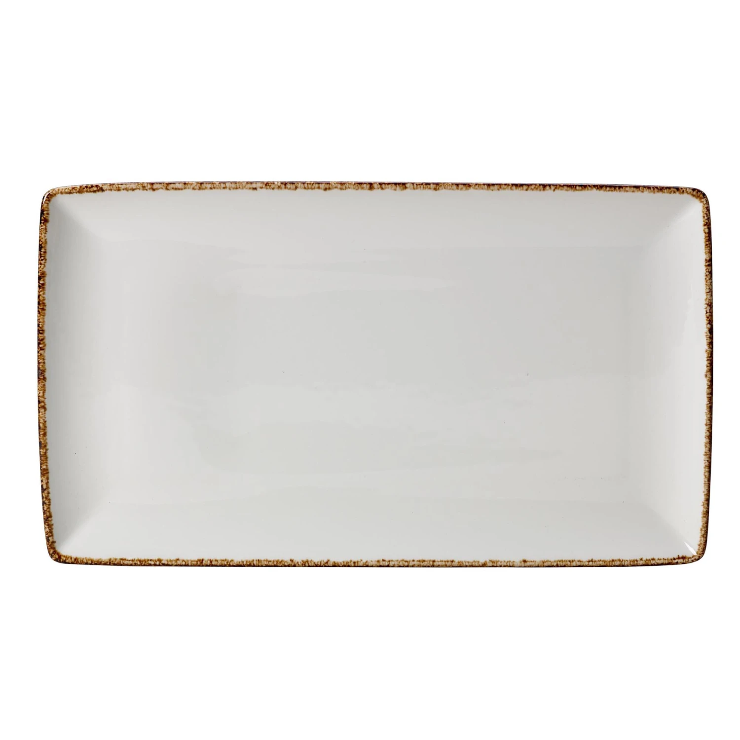 Simple yet exciting, this Brown Dapple platter features a soft white body and bold brown rim add both a rustic and contemporary feel for your food service presentation.