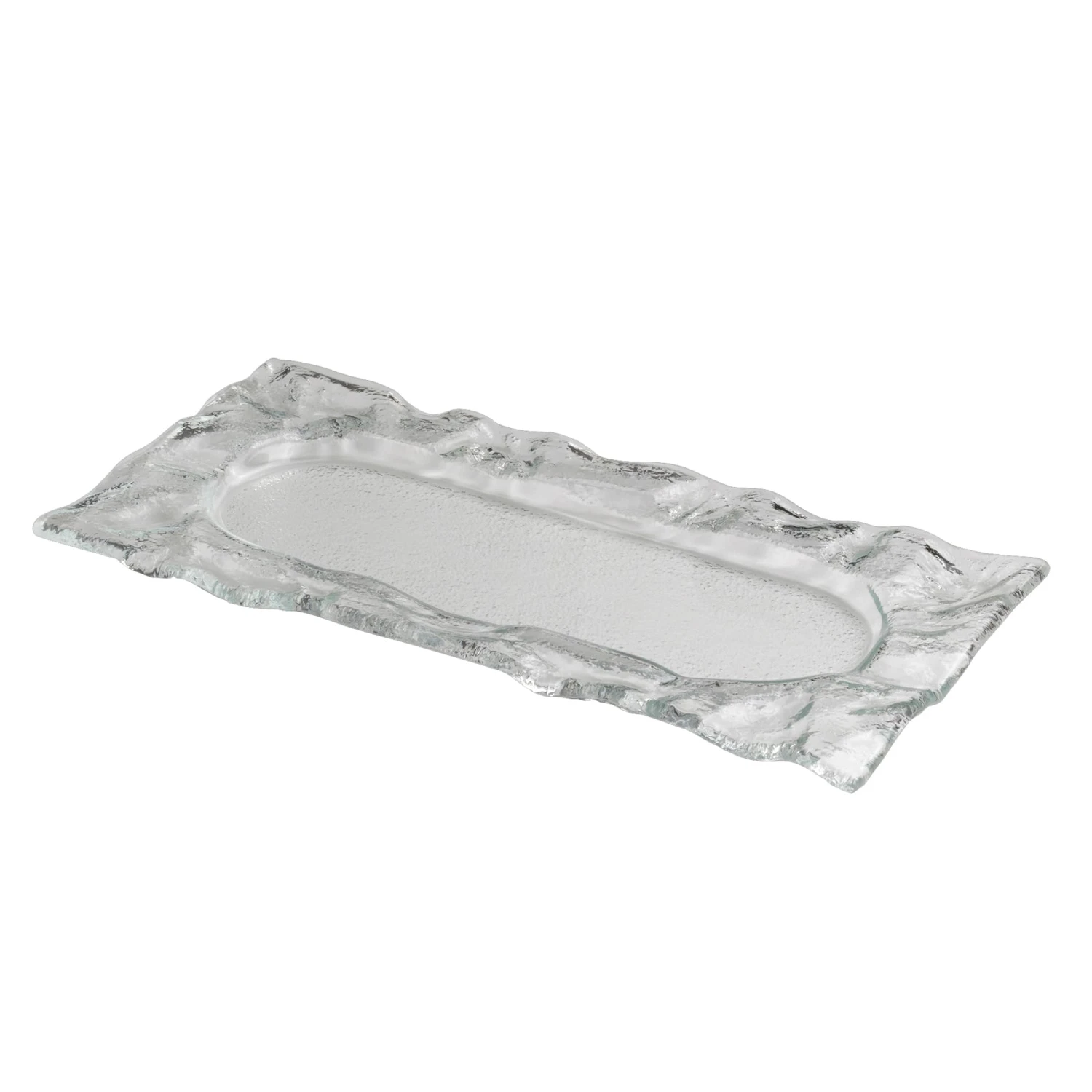 This Creations Splash platter provides the perfect serving piece for both bar service, sushi and seafood. With a free flowing form, this elegant glass dinnerware line is developed for a stunning presentation.