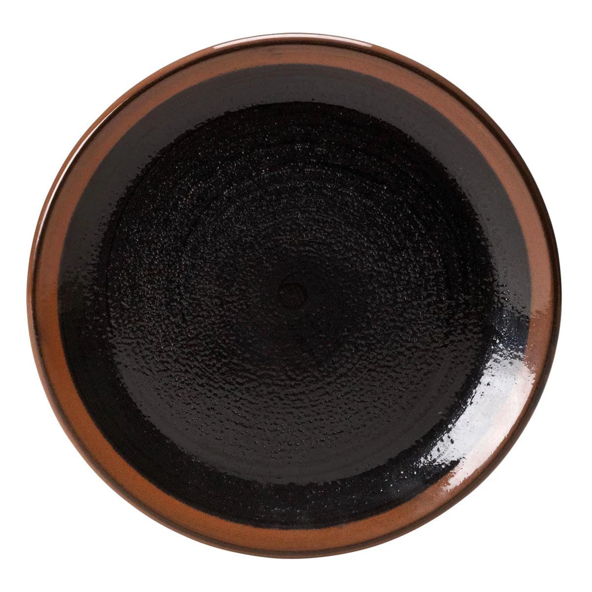 This Steelite Koto coup plate is hand finished with a rich iron red glaze, which interacts in the kiln to produce a warm, organic, lustrous effect. The deep black textured surface on this 11‐3/4″ plate allows food to be perfectly framed, adding drama and contrast to your presentation.