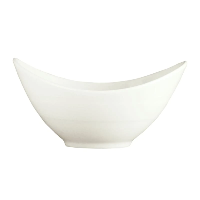 This Syracuse® Silk™ Oval Bowl has a 9.5 Ounce capacity and is great for serving salads, soups, desserts, and more. It is made from porcelain, and has a lifetime no-chip warranty.