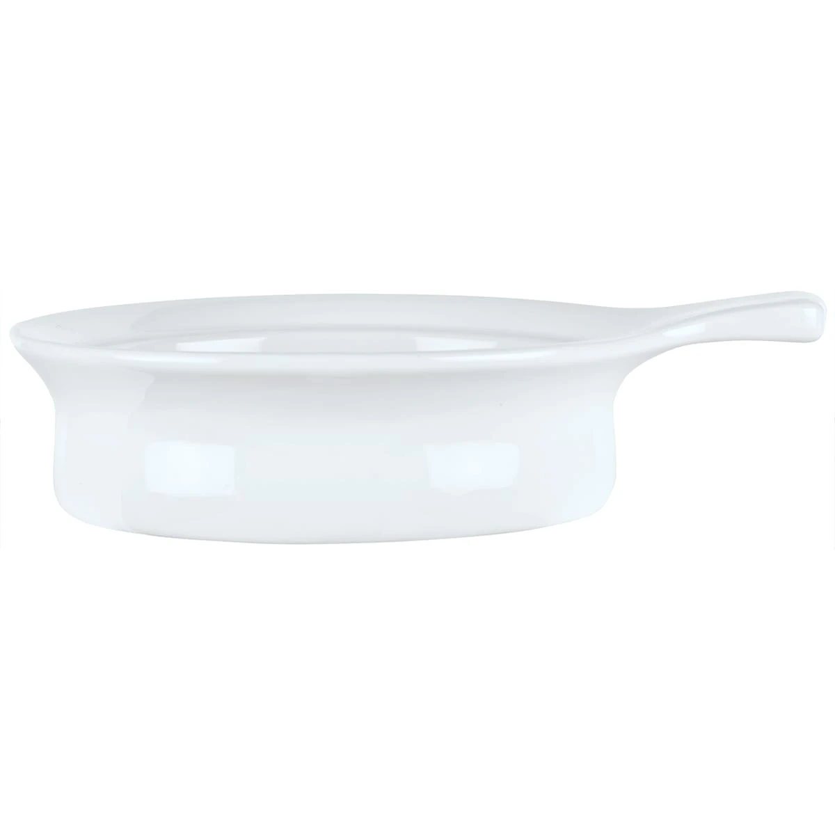 This shallow casserole dish from Syracuse China is part of the Chef’s Selection™ Collection and features a single side handle. This dish has a capacity of 10 Ounces and is 2″ deep.