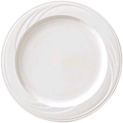 This 12″ plate features the swooping wave designs of the Turina shape with the undecorated flint white body of the Cascade pattern.