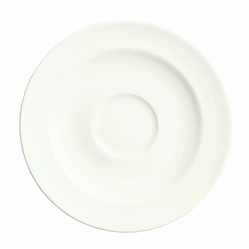 This Syracuse® Silk™ Saucer has a 6″ diameter and is great for adding a classy presentation to the Silk™ cups. It is made from porcelain and comes with a lifetime no-chip warranty.