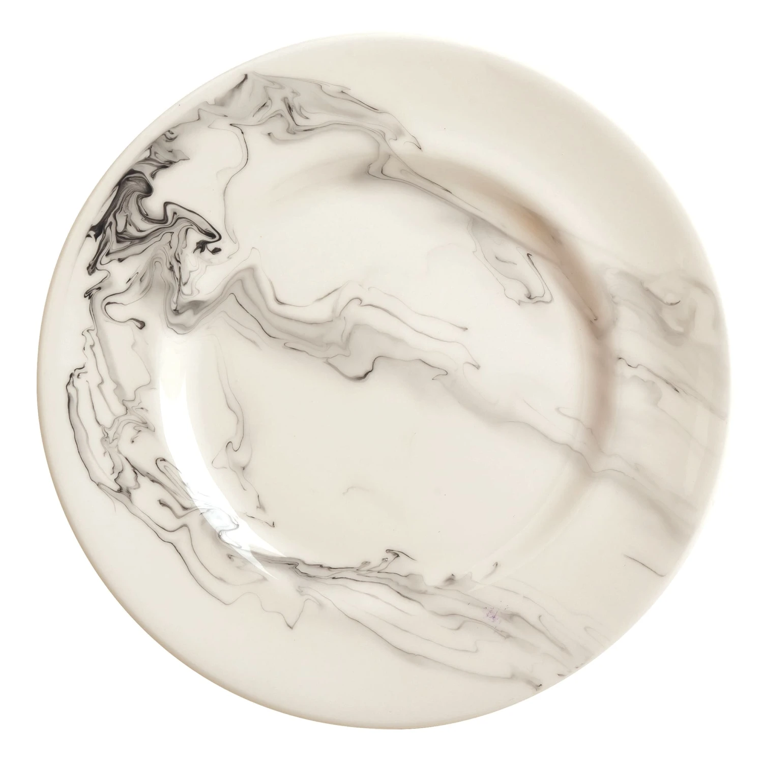This 9″ dinner plate from Syracuse China features unique smoke wisp designs that drift gracefully across the plate for a sophisticated vibe.