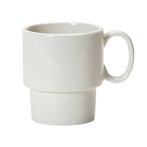 This Tuxton® Mug has a 10 Oz. capacity and is made from china in an eggshell color. It has a stackable design, perfect for easy storage. This mug is fully vitrified and lead free and is microwave, oven, and dishwasher safe. It has a lifetime edge chip limited warranty.