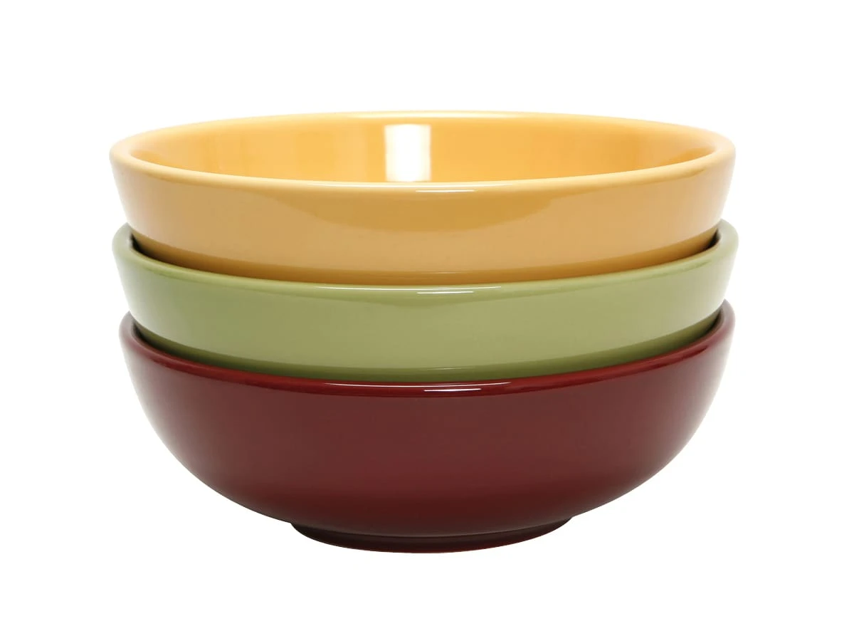 This comes with four bowls in Butterscotch, Pistachio and Cranberry. These bowls are dishwasher, oven and microwave safe.