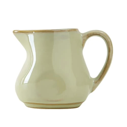 This 4 ounce creamer from Tuxton China is part of the Artisan Collection and features a sagebrush color. This durable creamer is fully vitrified and is microwave, oven and dishwasher safe.