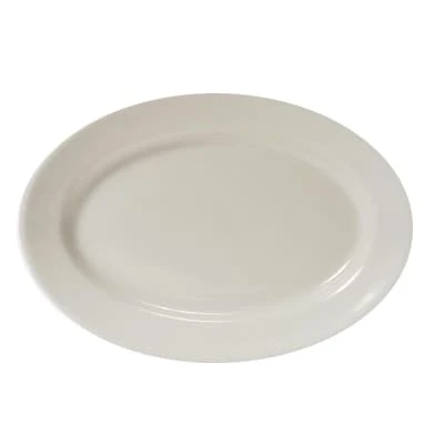 Use this oval platter from Tuxton® to serve main courses or to display desserts! This platter has a wide rim and the American white/eggshell color will blend in with any dining decor. It is microwave, dishwasher and oven safe and don’t forget about the Lifetime Edge Chip Limited Warranty.