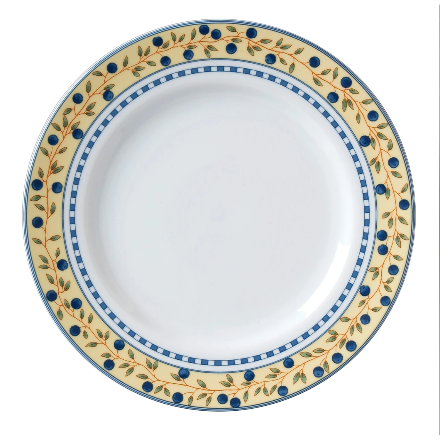 Dress up your table with this dinner plate trimmed with a delicate blueberry design. All Vertex China is made from lead‐free china and is dishwasher, oven, and microwave safe.
