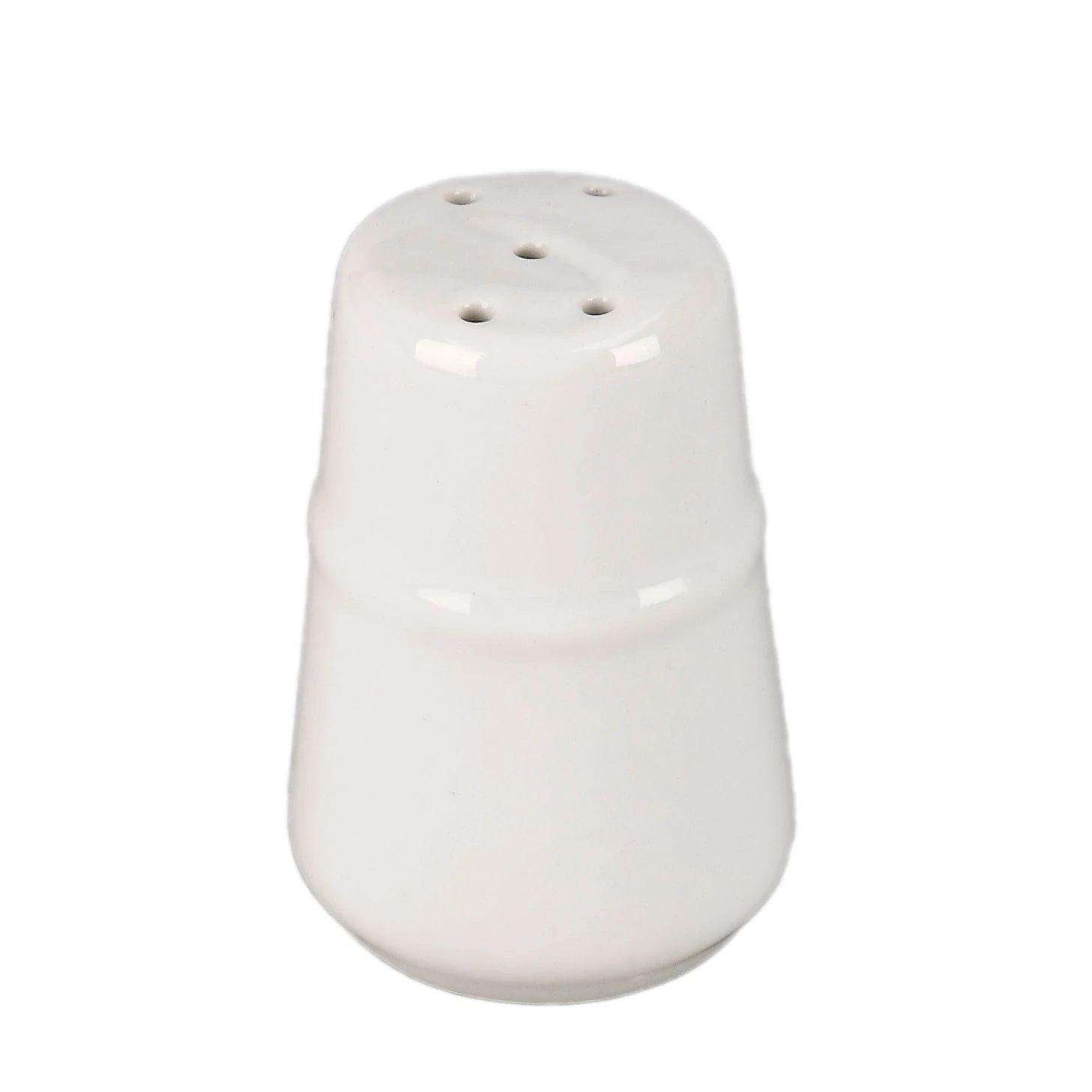 You can use Argyle salt and pepper shakers from Vertex China with white dinnerware, or with any color you choose for your table. White is classic and versatile.