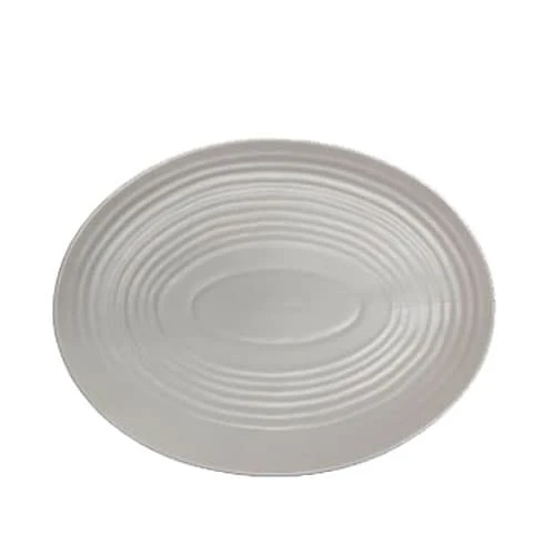 This 13.25″ oval platter from Vertex China is part of the Elements Collection and is a simple but beautiful addition to your tabletop. It features a gray matte finish with subtle embossing from the center to the rim.