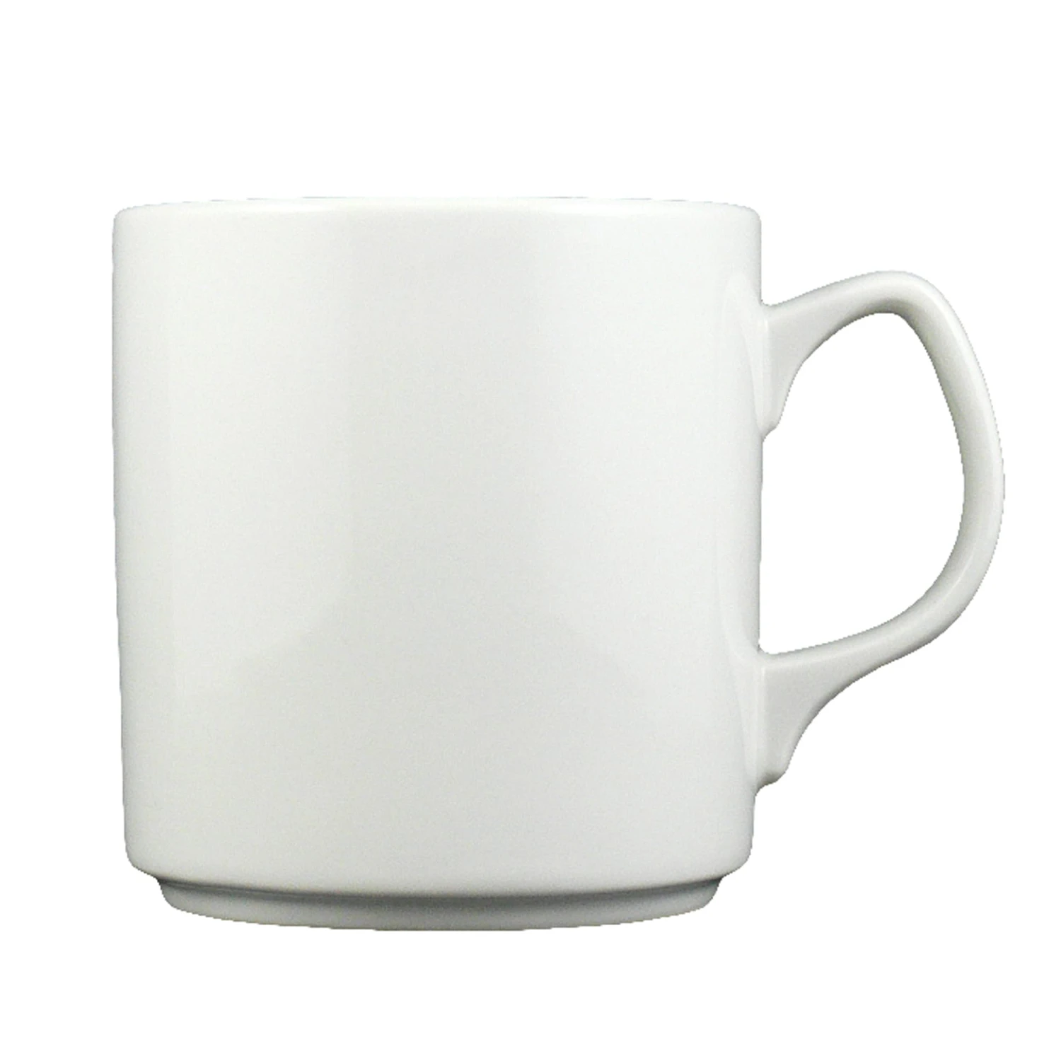 Create a table setting that fits your business by adding your logo or personal back stamp. You can serve 12 generous ounces of coffee or tea in this beautiful white mug.