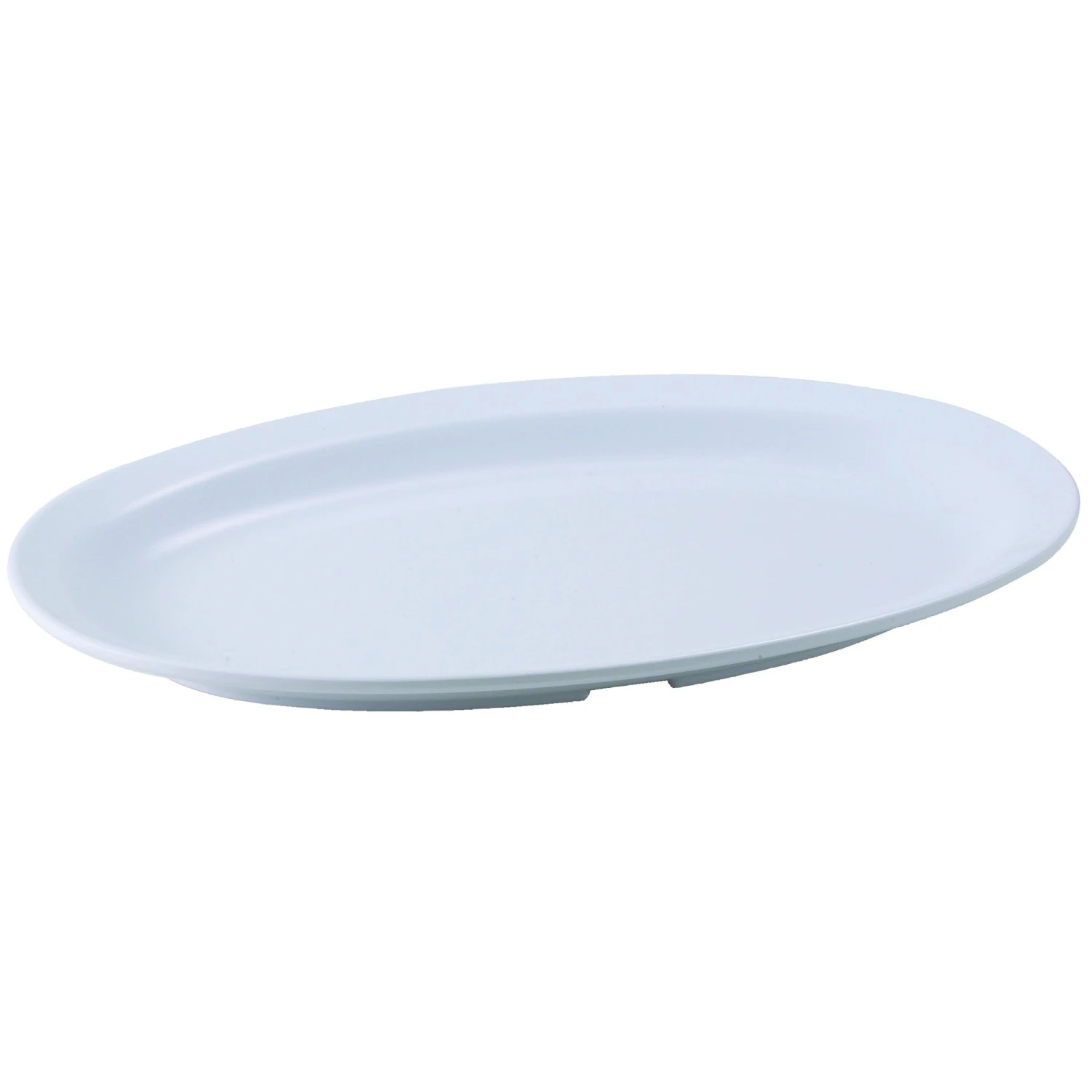 This melamine oval platter from Winco® is break-resistant and built to withstand the rigors of everyday use in fast paced foodservice establishments. Perfect for salad bars and buffets because of its great cold insulation, melamine also stays cool to the touch, allowing for hot entree service without getting burned.