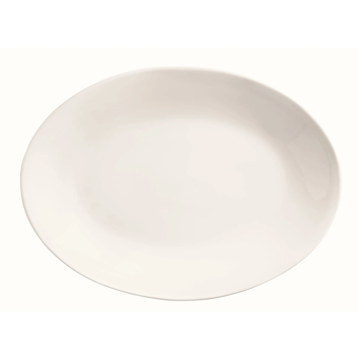 This 13‐1/2″ x 10″ rolled edge oval platter features the pure, bright white body and minimalist style of the Porcelana line.