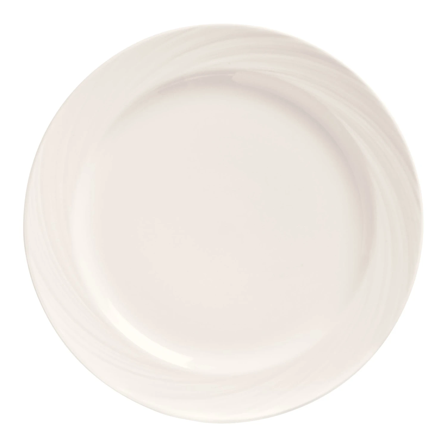 The calming, linear texture of this Basics Orbis 12‐1/2″ plate surrounds your entrees with style and add something special to your tabletop. It works great as an accent to the World Basics dinnerware pattern which shares the same body color.