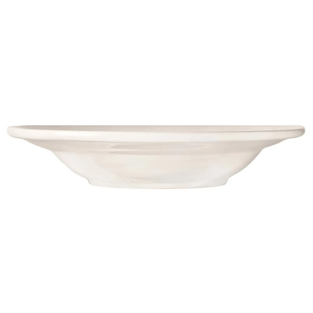 This 10.25 ounce soup bowl from World® Tableware is part of the Basics Orbis Collection and features beautiful bright white porcelain construction. The spiral like carvings on the rim will add a unique twist to your table setting.