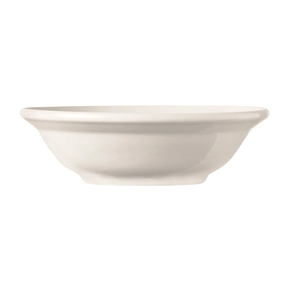 This Basics Orbis 10 ounce grapefruit bowl from World® Tableware is made using fully vitrified, durable porcelain. The spiral like carvings on the rim will add a unique twist to your table setting.