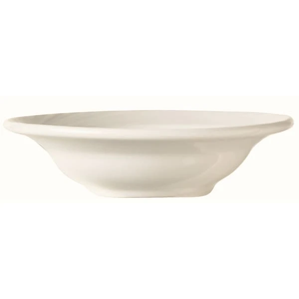 This Basics Orbis 3 ounce fruit bowl from World® Tableware is made using fully vitrified, durable porcelain. The spiral like carvings on the rim will add a unique twist to your table setting.