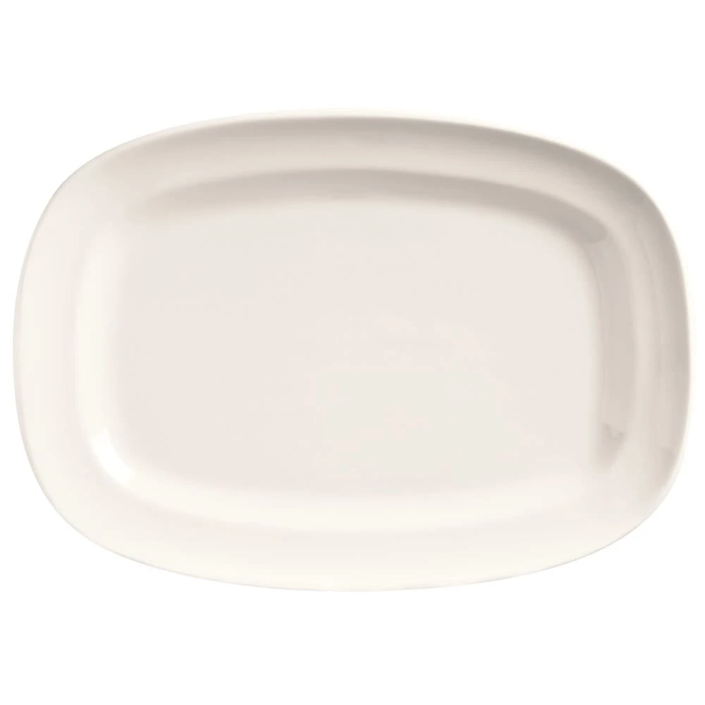 This Basics race track platter measures 12″ x 8‐1/2″ and is constructed of bright white porcelain. Makes the perfect back drop for your delicious entrees.