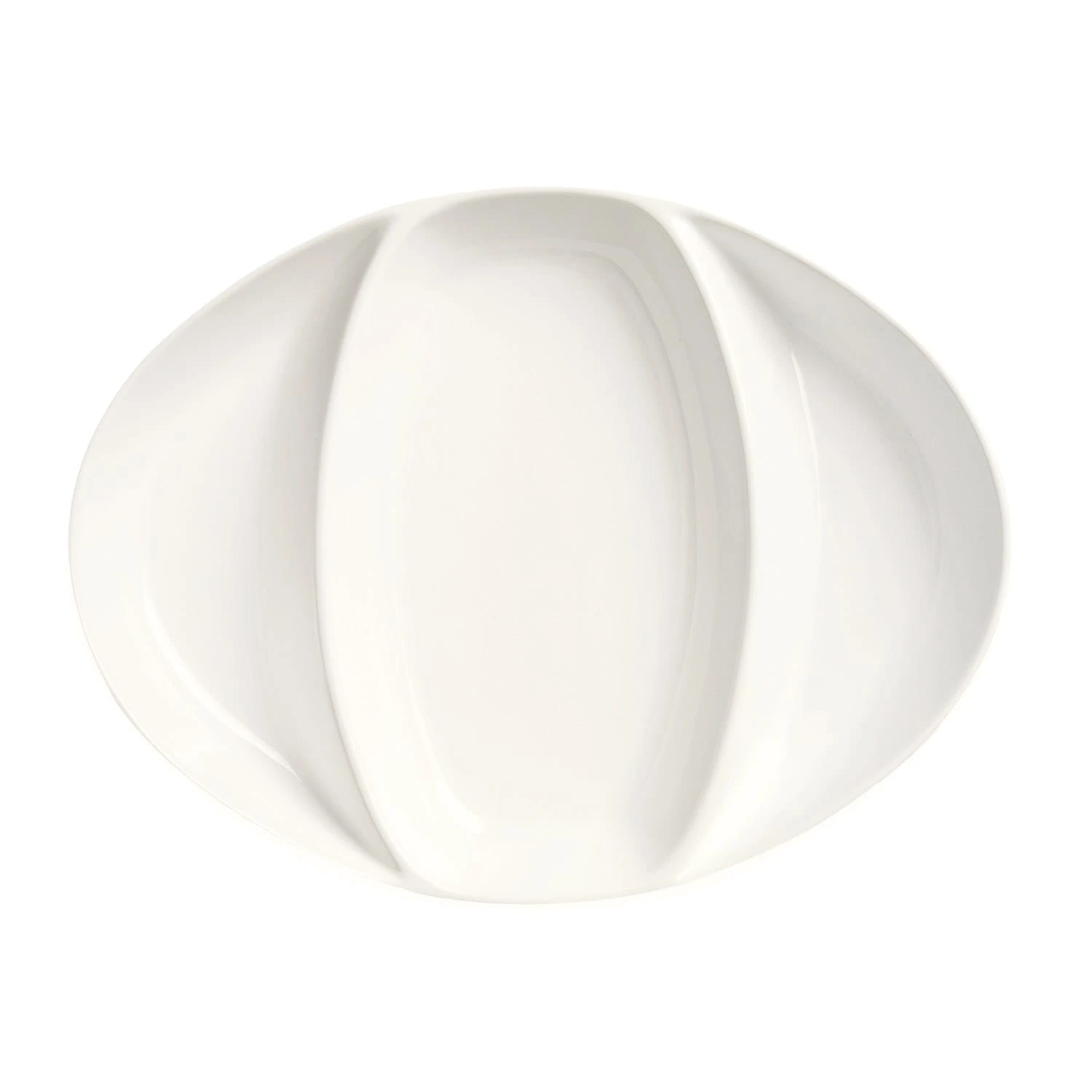 This 11″ divided platter features 3 separate, multiple size food sections from our Chef’s Selection™ II collection. Use for sharable appetizers or when serving an entree with two sides.