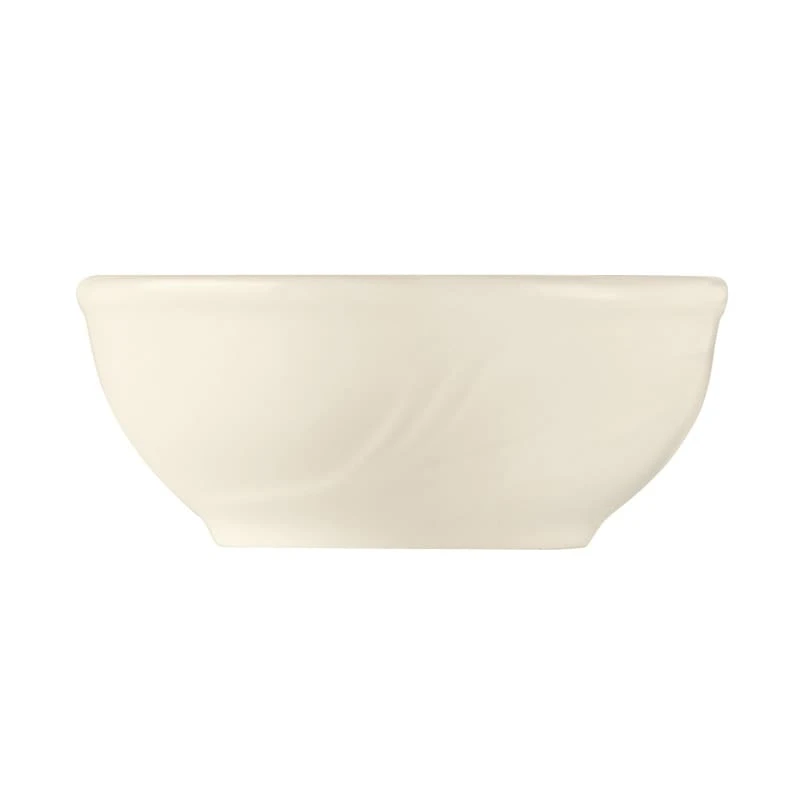 For a refined breakfast service, choose this 12 ounce oatmeal bowl. This bowl features a cream white porcelain body and the fanned accent lines of the Endurance collection.