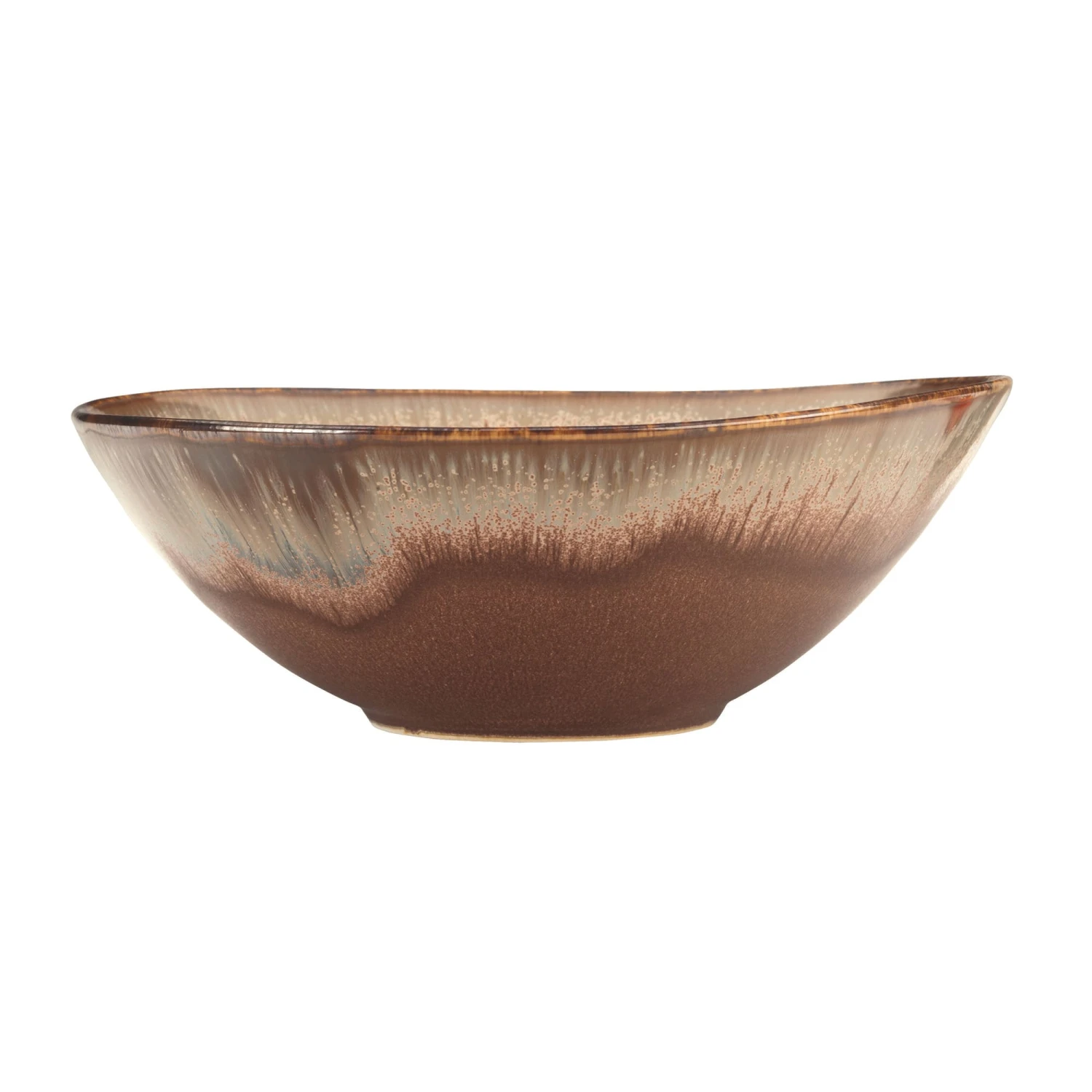 Add warmth and style to your table with this 41 ounce bowl from World Tableware. It is part of the Hedonite Collection and features a charming reactive glaze. The unique glazing process means no two pieces are the same, featuring a distinctive spectrum of intermingling colors. Hues of terracotta, blue grays and subtle deep pinks come together for a one-of-a-kind design.