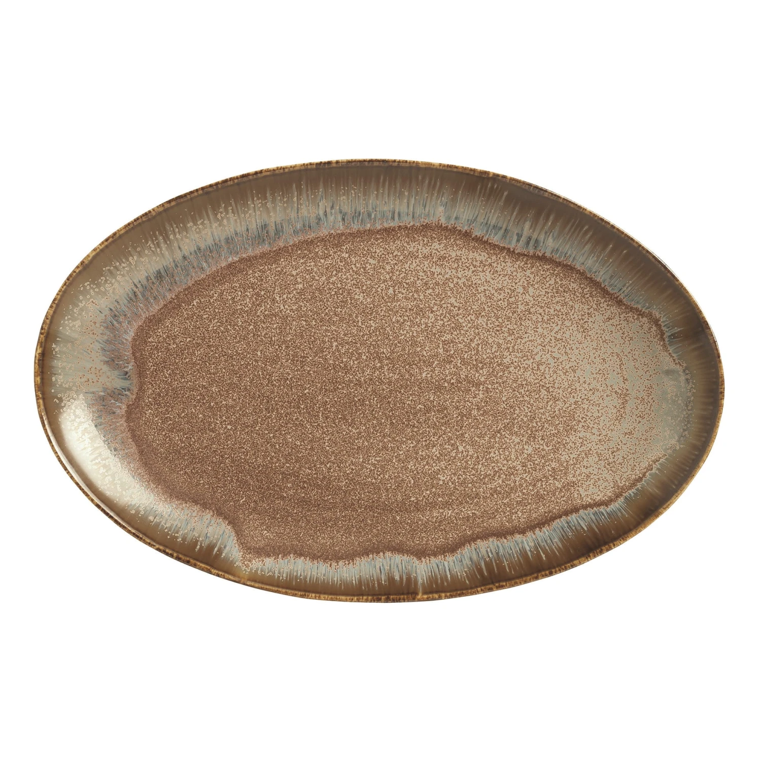 Add warmth and style to your table with this oval platter from World Tableware. It is part of the Hedonite Collection and features a charming reactive glaze. The unique glazing process means no two pieces are the same, featuring a distinctive spectrum of intermingling colors. Hues of terracotta, blue grays and subtle deep pinks come together for a one-of-a-kind design.