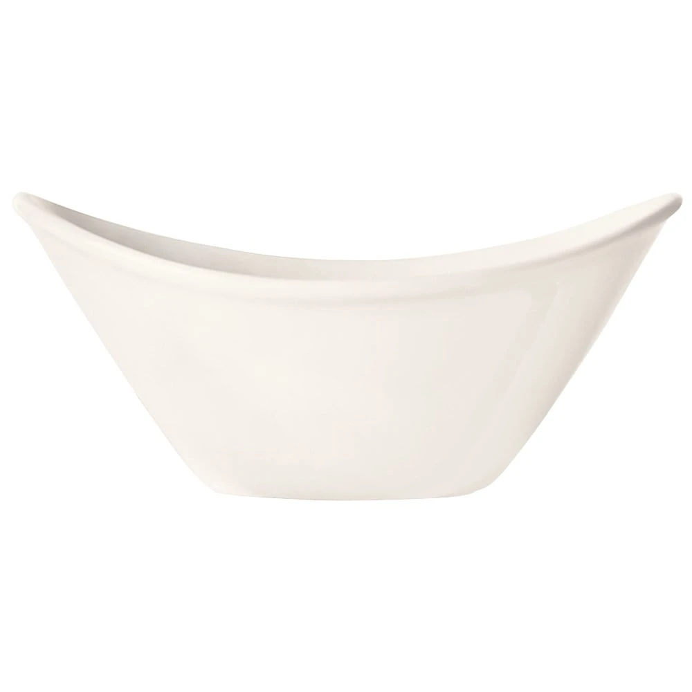 This 13 ounce oval bowl features the bright white porcelain body and curved rim of the Infinity bowl collection.