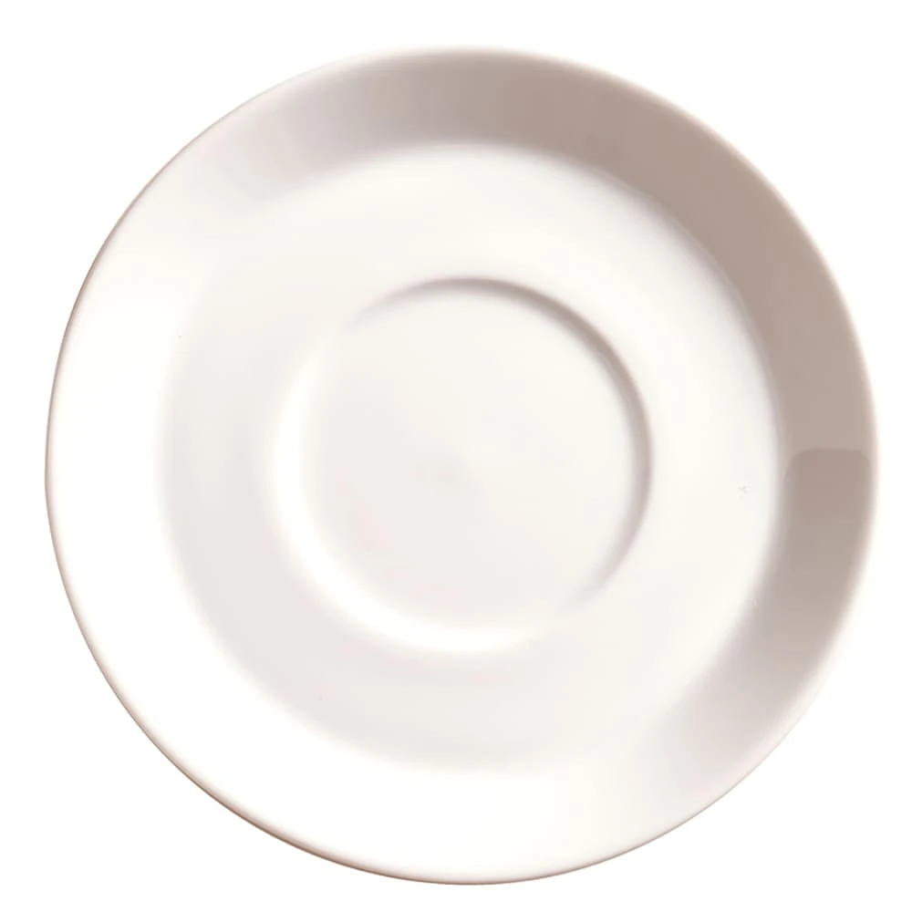 This 4‐3/4″ Espresso saucer from World® Tableware features an ultra bright white porcelain body and the simple, yet elegant design will blend with just about any table setting. Perfect for casual or contemporary dining.; Fits the SYW‐4 Espresso cup.