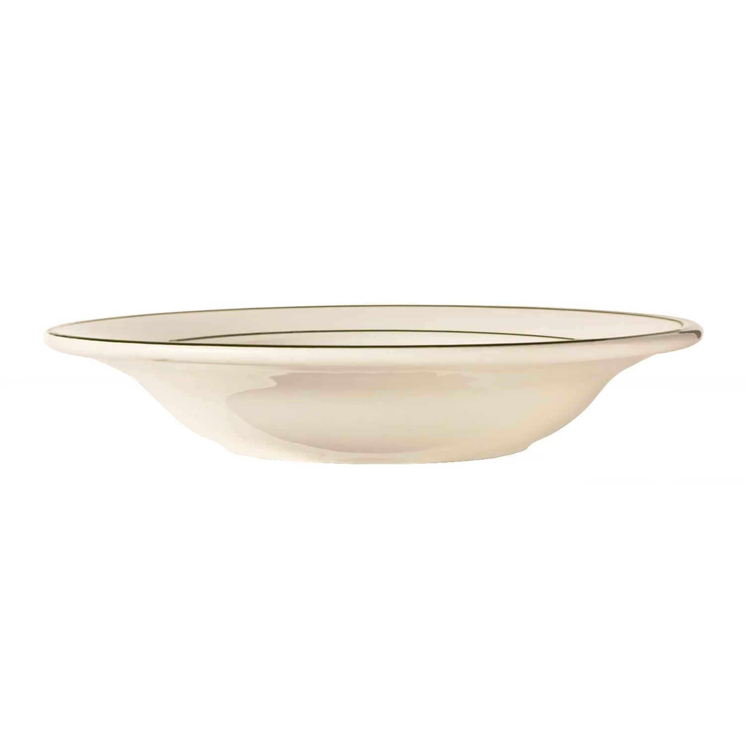 This 12 ounce deep rim soup bowl features a cream white body with the dark green bands of the Viceroy pattern.